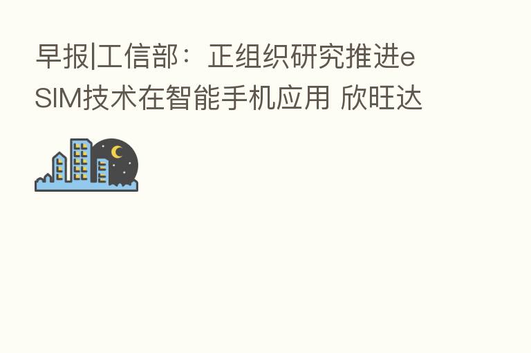 早报|工信部:正组织研究推进eSIM技术在智能手机应用 欣旺达拟120亿投建动力电池生产基地